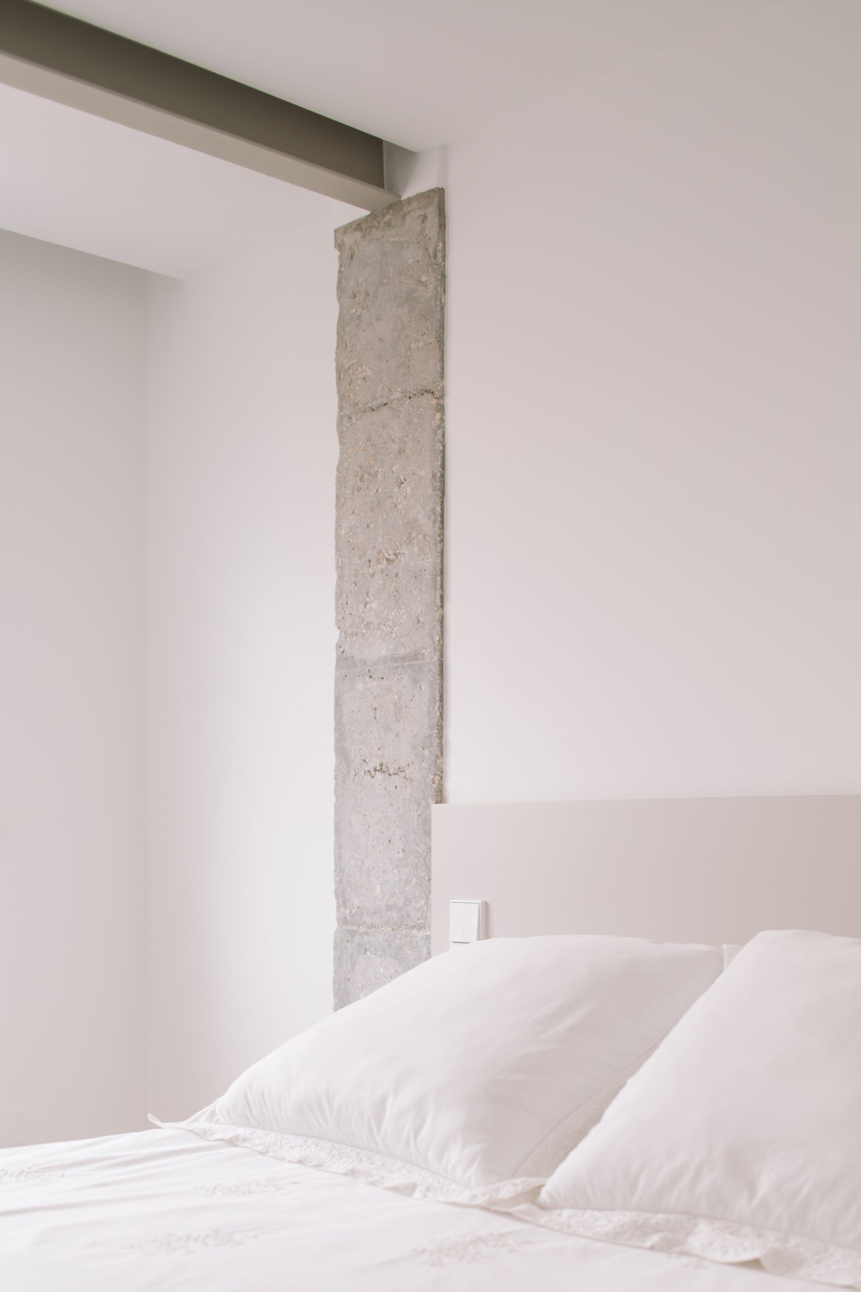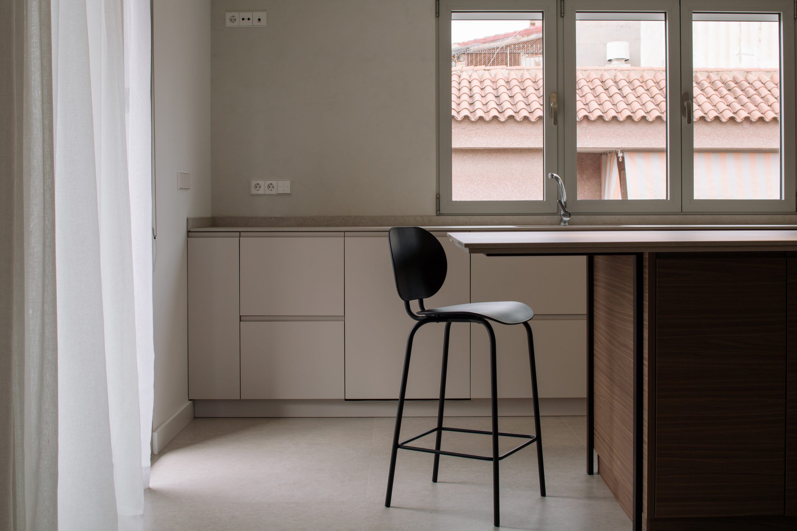El proyecto transforma completamente el espacio para responder a las necesidades de una familia de cuatro, con una distribución optimizada y soluciones funcionales de almacenaje que no renuncian a la estética. Desde una mirada sensible y contemporánea, Elena Yago convierte los elementos estructurales originales —pilares y vigas de hormigón y vigas metálicas— en protagonistas silenciosos del nuevo lenguaje arquitectónico de la vivienda.